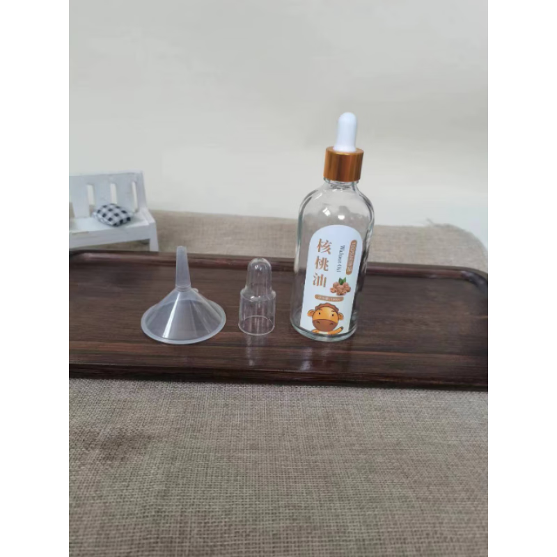 YWZR食油瓶滴管副食品油滴管分装瓶100ml透明玻璃瓶儿童核桃油瓶山茶 1祇100ml装+塑料漏斗(送滴管送贴