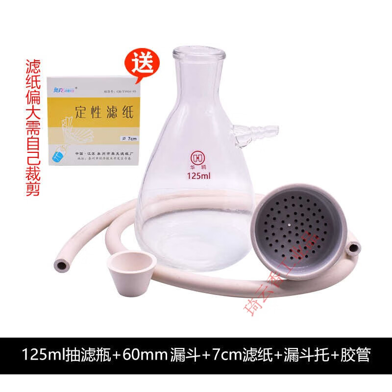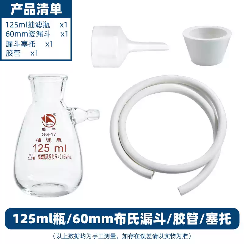实验室布氏漏斗真空抽滤装置12525050010002500500010000ml 125ml瓶/60mm瓷漏斗/胶管/