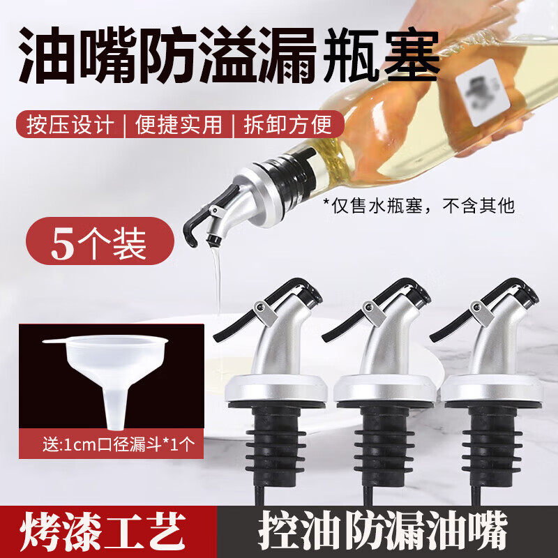 乐睦唯(L'AMAVO)调料瓶盖导流嘴 酱油壶嘴醋橄榄油盖子玻璃瓶塞厨房控油倒油瓶嘴 油嘴塞5个装【送漏斗】