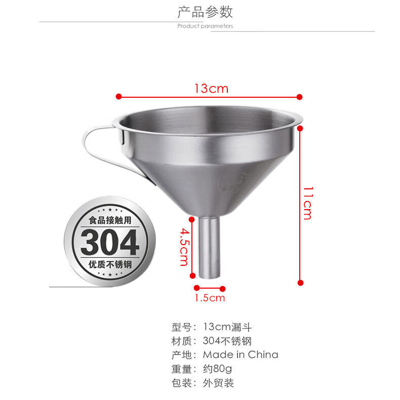 304不锈钢漏斗锥形商用装瓶器倒油杯装油漏兜家用厨房注油器 13cm漏斗304钢砂光