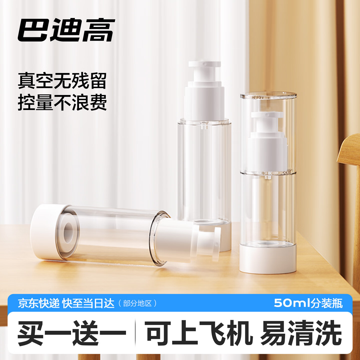 巴迪高旅行真空分装瓶护肤化妆品乳液按压式空瓶便携乳液真空瓶50ml