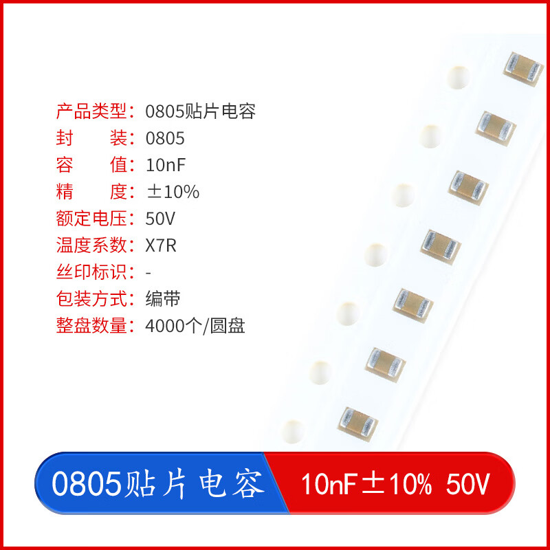 YourCee0805贴片电容器系列10pF22pF100pF470pF1nF2.2nF10nF100nF1uF10uF 10nF_±10%_50V_X7R 100只