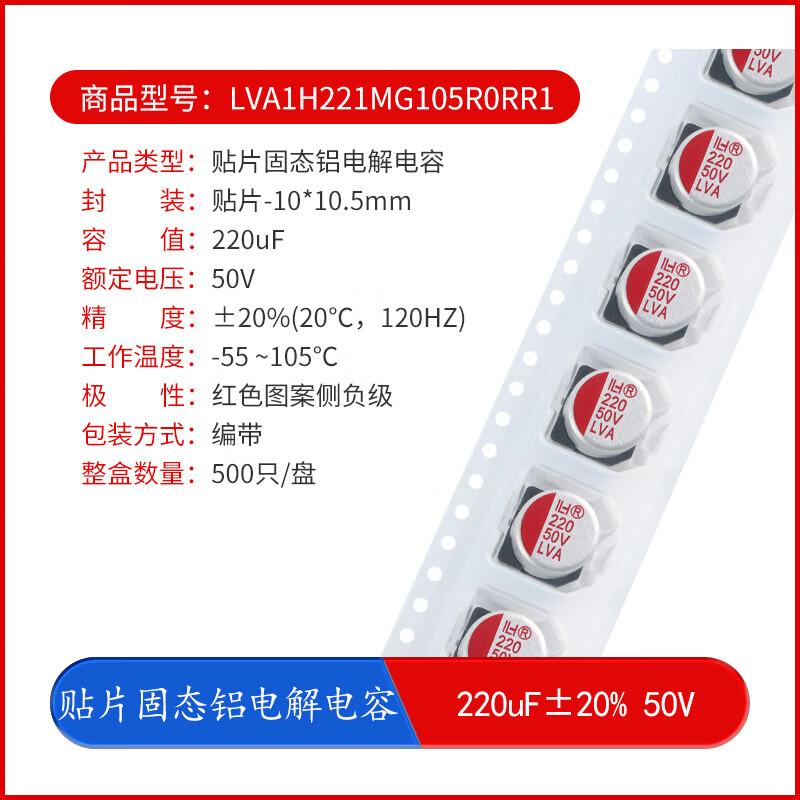 YourCee贴片SMD固态铝电解电容器 22uF47uF100uF220uF330uF470uF1000uF 220uF_50V_10*10.5mm 无规格