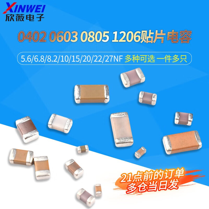 0805 0603 0402 1206贴片电容 5.6/6.8/8.2/10/15/20/22/27 0402 6.8NF 10 50V 100只
