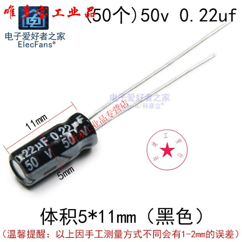 山头林村直插贴片铝壳电解电容1042F10uf2F100uf电容器电子爱好 荧光黄(50个)50v0.22uf
