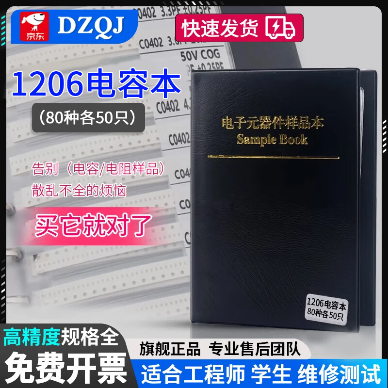 DZQJ 贴片电阻本 电阻包 0402 0603 阻值 电阻器 电阻元件样品册 电子元器件大全 1206电容本(80种各50只)