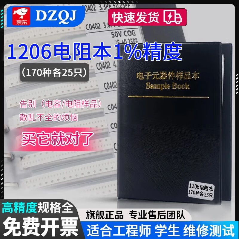 DZQJ 贴片电阻本 电阻包 0402 0603 阻值 电阻器 电阻元件样品册 电子元器件大全 1206电阻本(170种各25只)1%精度
