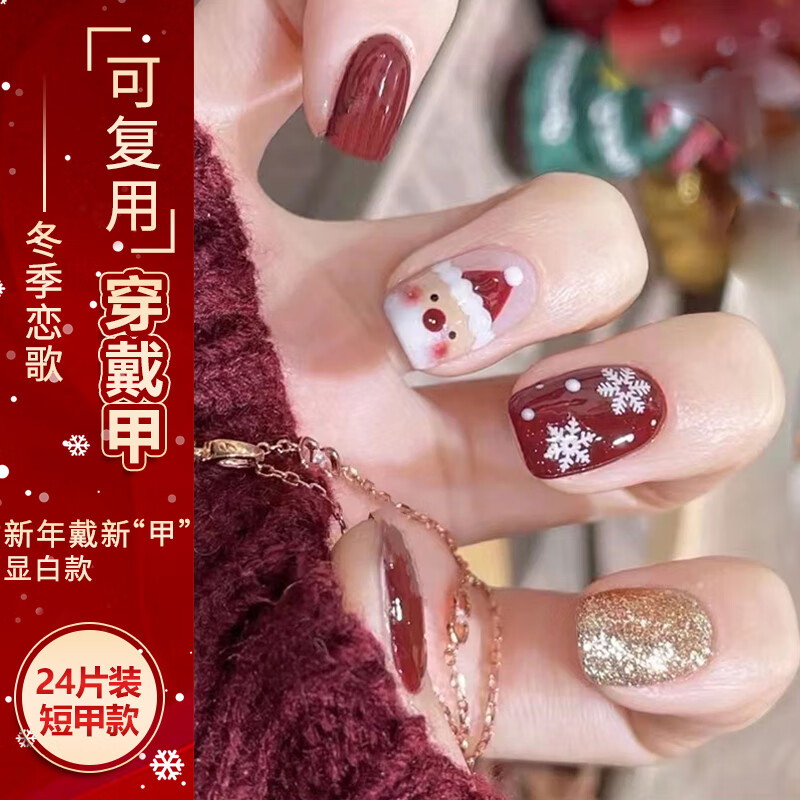 NHGAD穿戴甲冬季恋歌 手工美甲显白贴片假指甲ins风可拆卸短款成品24片
