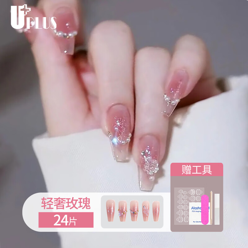 优家(UPLUS)美甲贴片穿戴甲24片(轻奢玫瑰)果冻胶假指甲片女神礼物