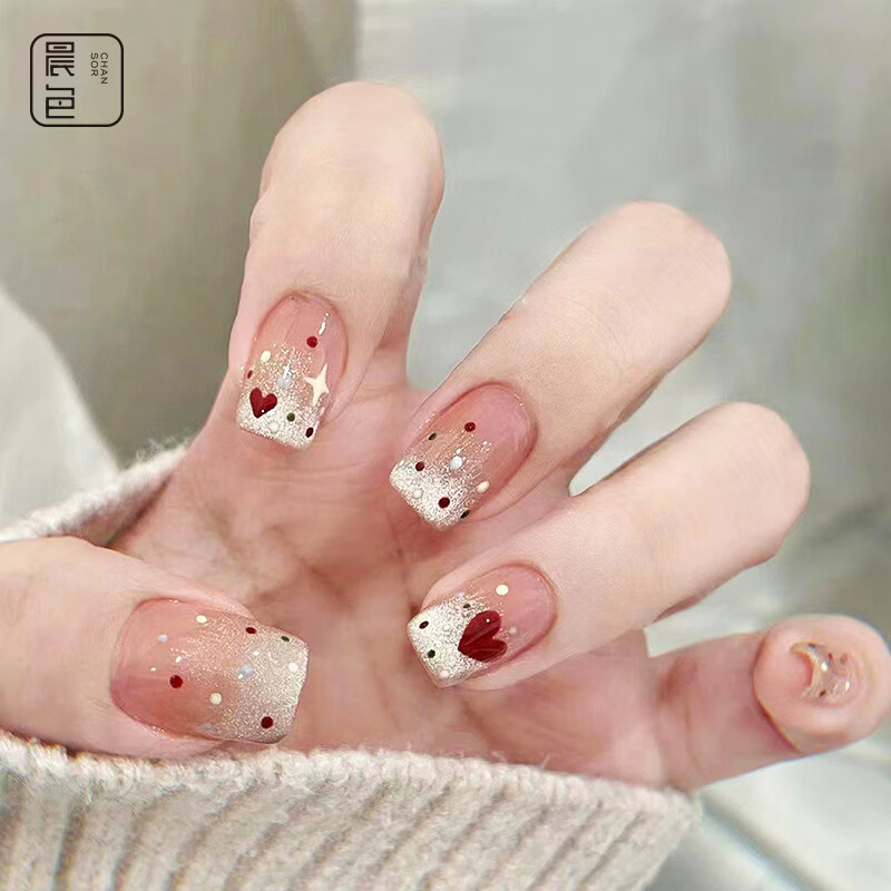 晨色穿戴甲美甲贴片【星星爱心】指甲贴成人甲片中短款24片可拆带工具