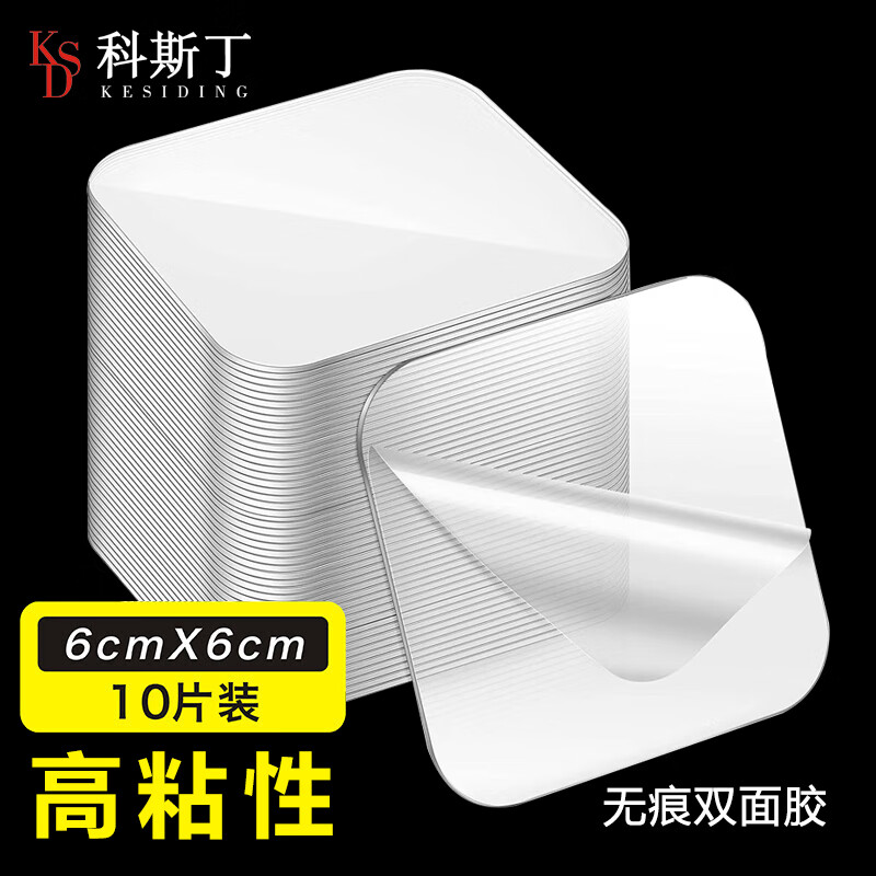 科斯丁 纳米双面胶高粘度粘贴片固定贴无痕胶贴强力胶双面贴排插固定器 圆角方形6cm*6cm【10片装】
