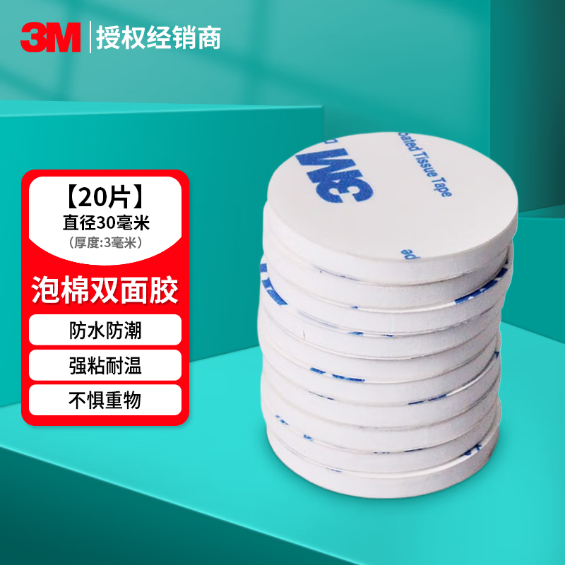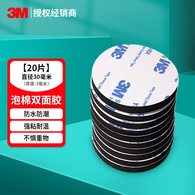 3M泡沫双面胶强力加厚车家两用泡棉海绵无痕固定黏胶粘墙面瓷砖贴片 20片 直径30mm 厚度3mm 白色