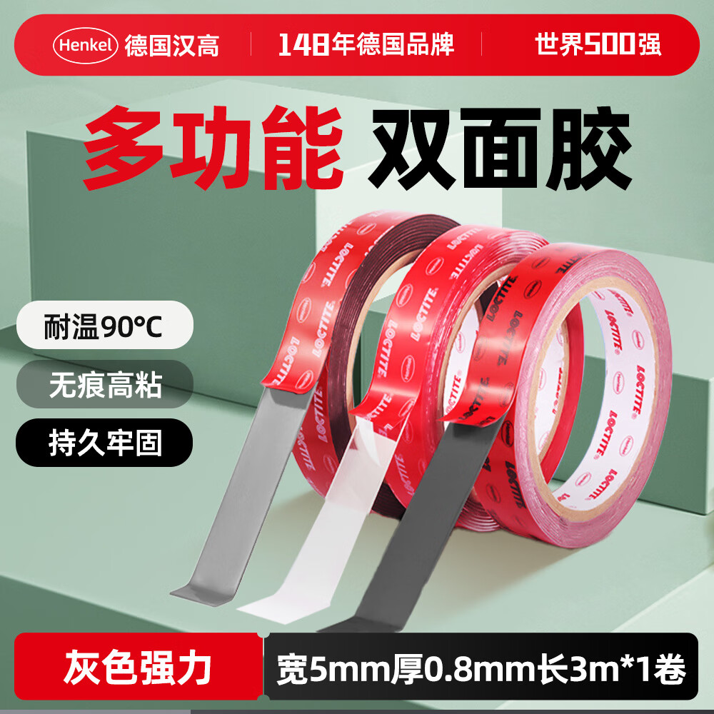 汉高双面胶强力汽车etc无痕耐高温电工胶布防水防滑粘贴片灰-5mm*3m
