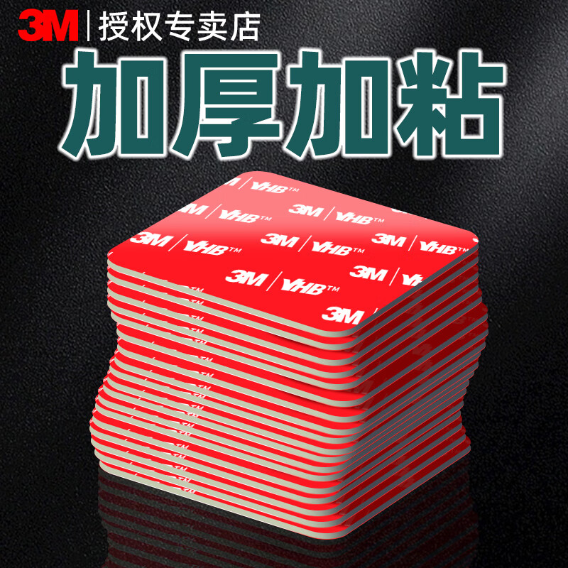 3M高粘度强力双面背胶耐高温汽车ETC墙面固定无痕泡棉海绵粘胶贴片 方形84*53mm*10片装【灰色】