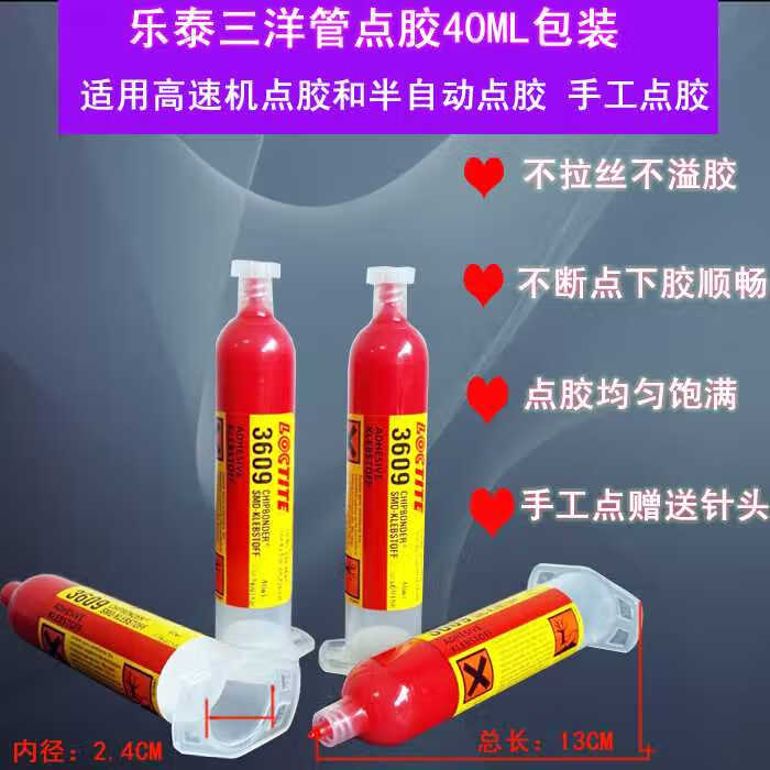 供应SMT3611贴片红胶 高速点胶乐泰3609贴片红胶水点胶送头 三洋管40ML