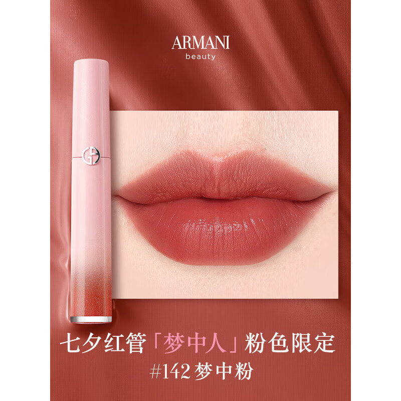 阿玛尼(ARMANI)阿玛尼梦中人系列红管唇釉#142梦中粉 显白不沾杯 圣诞礼物送女友