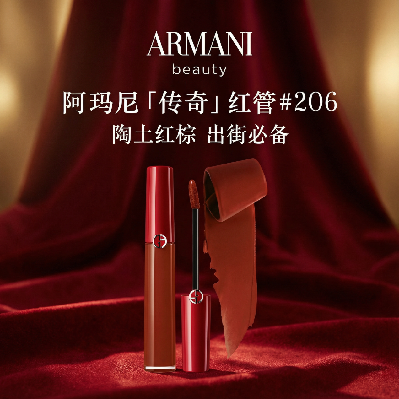 阿玛尼红管唇釉#206陶土红棕 素颜显白口红不沾杯润唇膏 新年礼物女士