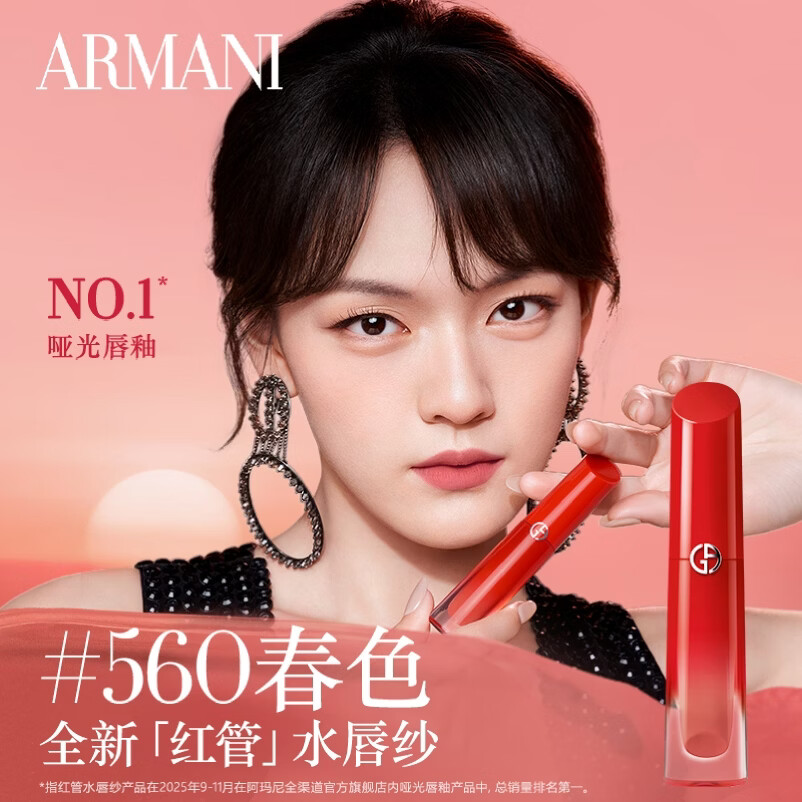 阿玛尼红管水唇纱唇釉#560春色 显白桃花粉【0108达人专享】