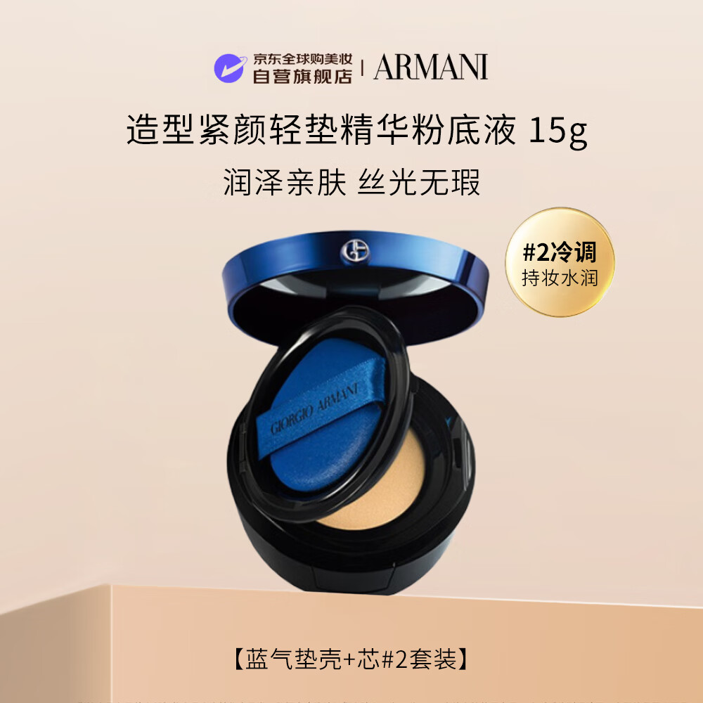 阿玛尼(ARMANI)造型紧颜轻垫精华粉底液15g 蓝气垫壳+芯 持妆水润#2冷调生日礼物