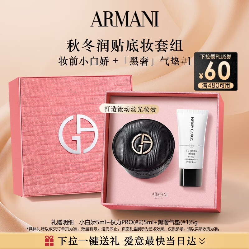 阿玛尼气垫防晒底妆礼盒白娇妆前+黑奢气垫润贴持妆 新年礼物