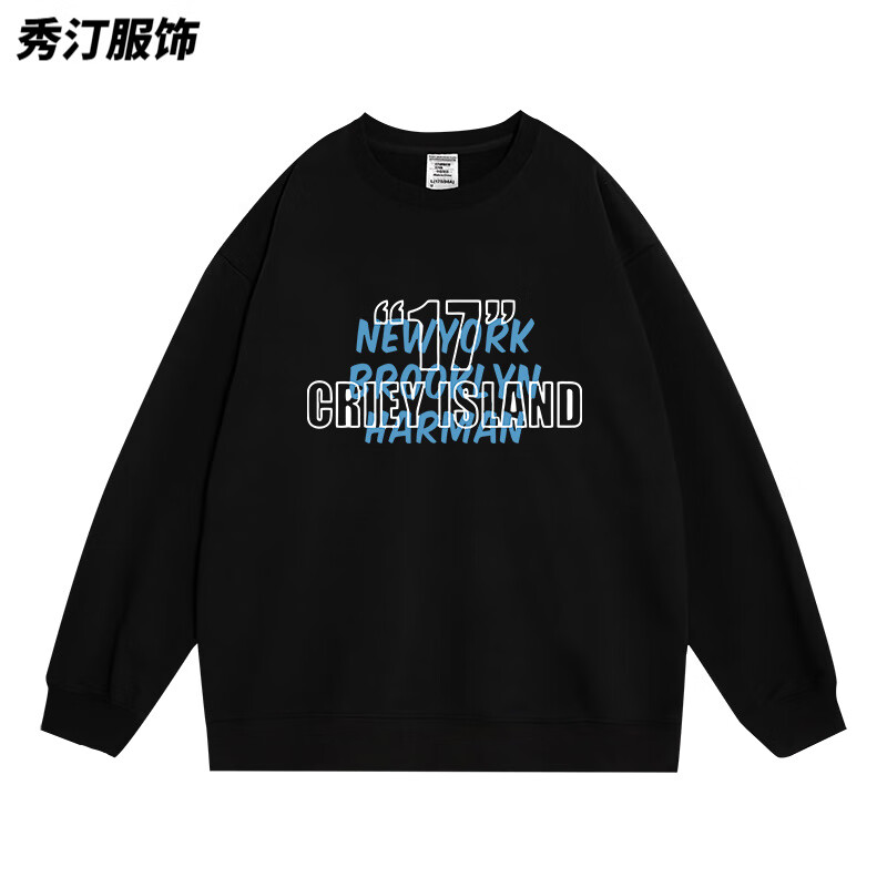 风鸢花陈哲远同款白色圆领男生卫衣秋冬宽松设计感小众潮流加绒加厚上衣 黑色 圆领春秋款 S