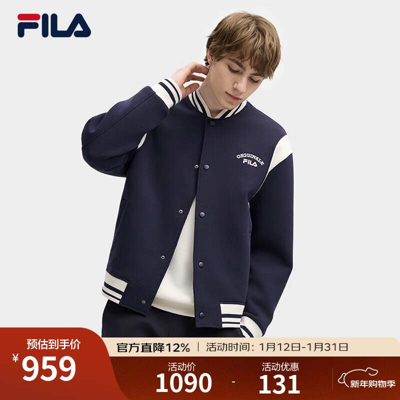 FILA陈哲远同款斐乐官方男针织长袖外套25春新时尚宽松休闲棒球服 秘镜蓝-DB L 175/96A/L