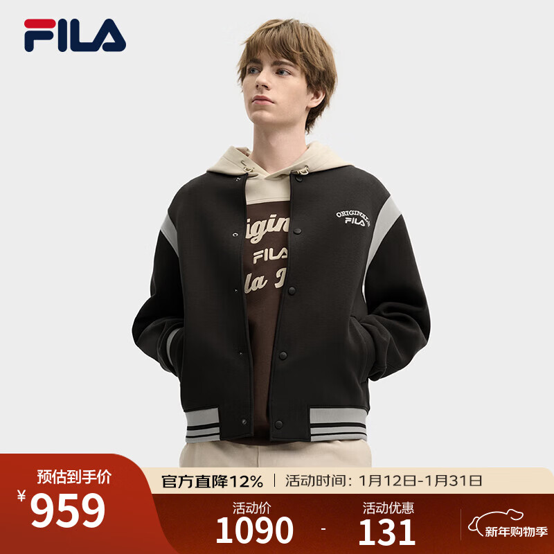FILA陈哲远同款斐乐官方男针织长袖外套25春新时尚宽松休闲棒球服 咖啡棕褐色-BN L 175/96A/L