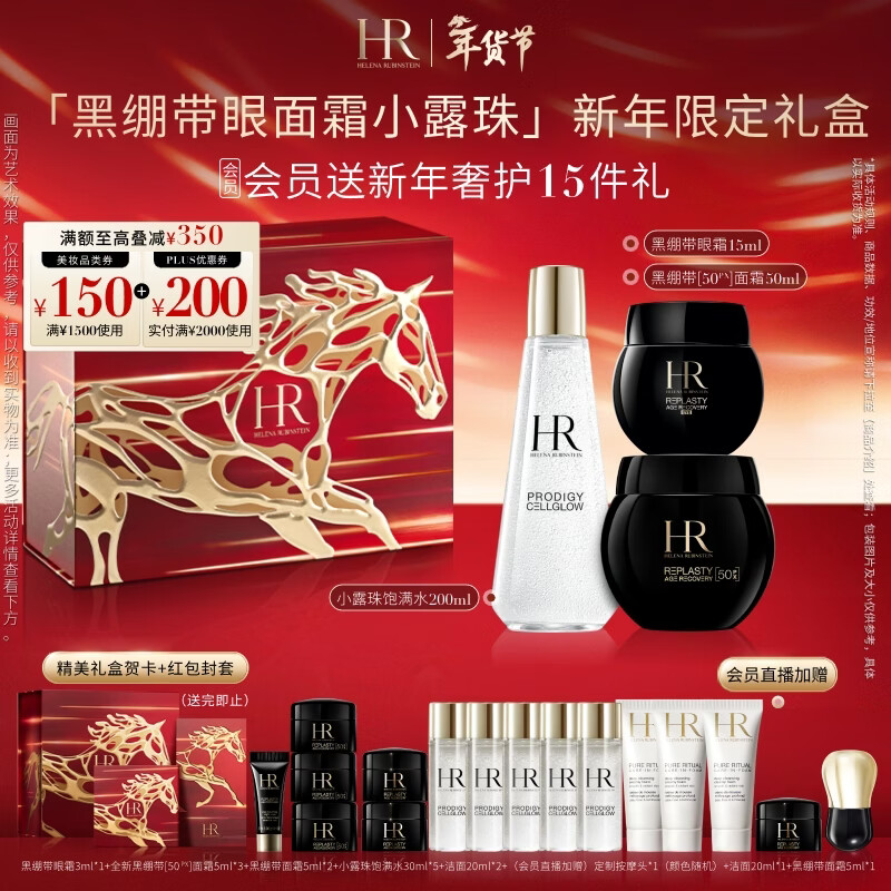 赫莲娜HR黑绷带50+眼霜+小露珠面霜精华水护肤品套装礼盒新年礼物送女友