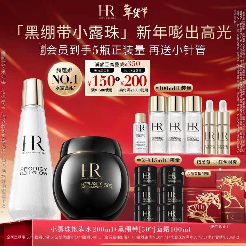 赫莲娜HR黑绷带50PX面霜100ml+小露珠饱满水200ml面霜精华护肤品化妆品