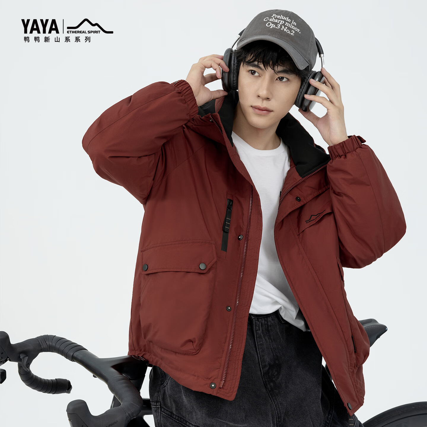 鸭鸭(YAYA)【欧豪同款】羽绒服男女同款户外休闲保暖防水防风连帽秋冬冲锋衣 赤露珠红色 M 110-125斤