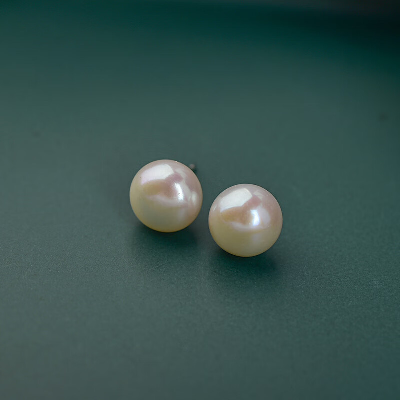 子龙珍珠耳钉女【露珠】淡水高光馒头珠气质简约百搭空乘款耳饰 10MM+珍珠耳钉一对