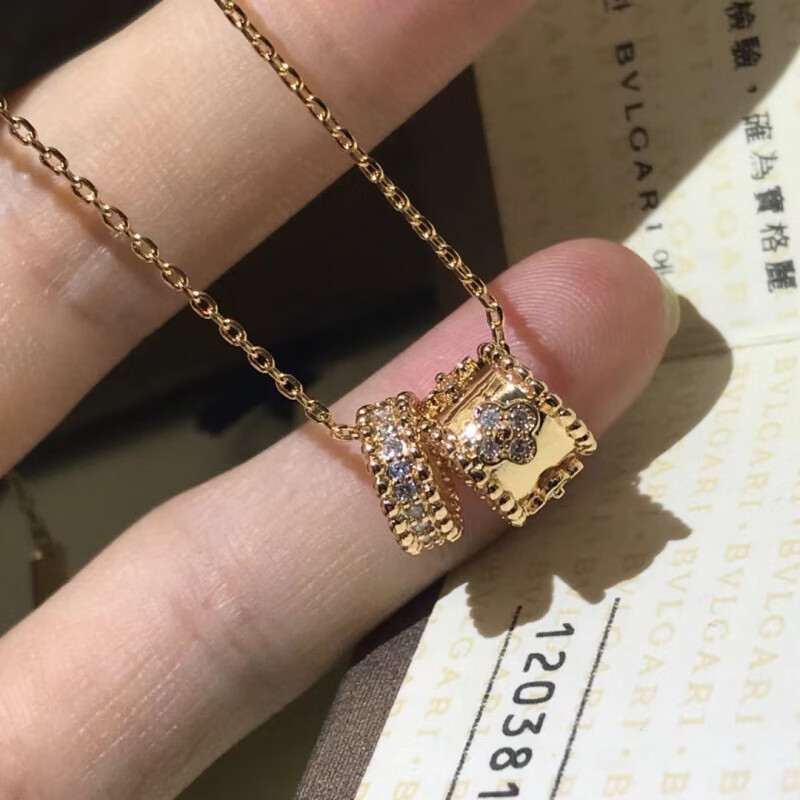 纸色蓝色 四叶草万花筒项链S925银体精工版时尚轻奢露珠吊坠锁骨 双件万花筒【玫瑰金】