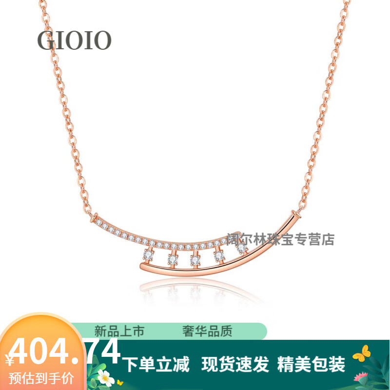 GIOIO施华洛世奇锆原创几何微笑项链女百搭S925银七夕情人节礼物送同款 S925欢笑露珠项链-玫 925银