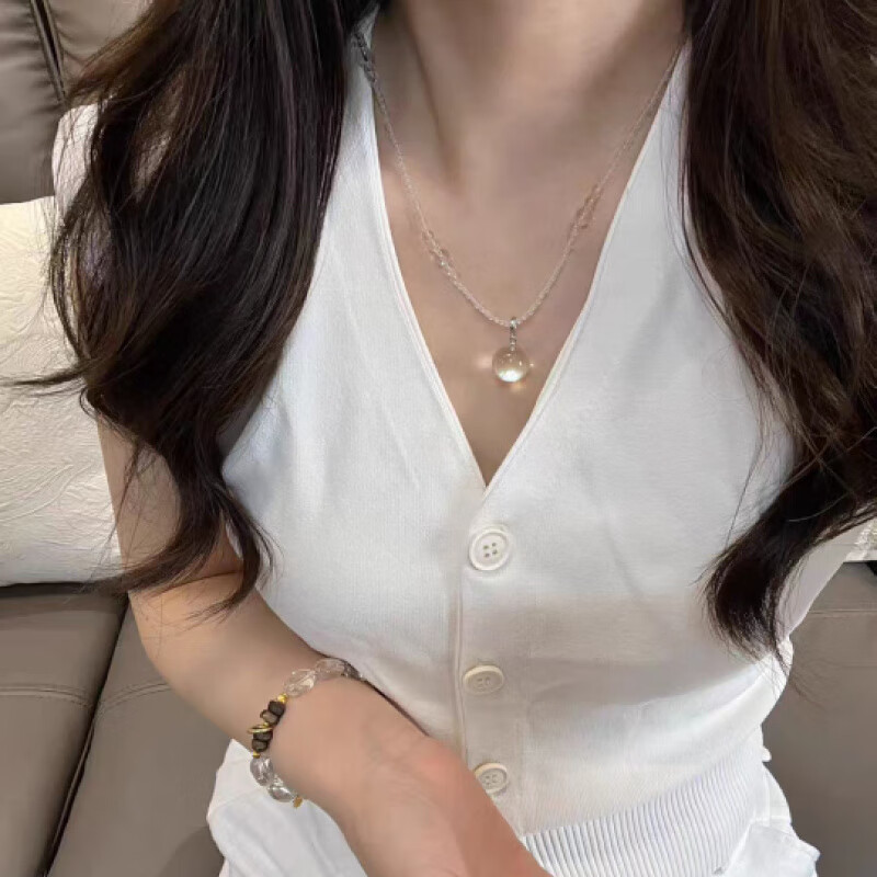 buhesyt999白水晶露珠项链女轻奢通透小众设计锁骨链精致颈 晶露珠项链