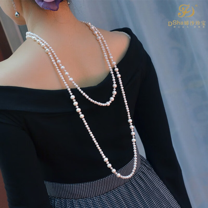 胖东来同款珍珠项链长款:露珠盈盈:天l然大小珠毛衣链:: 专柜优雅白:高品质天|然珍珠 120cm