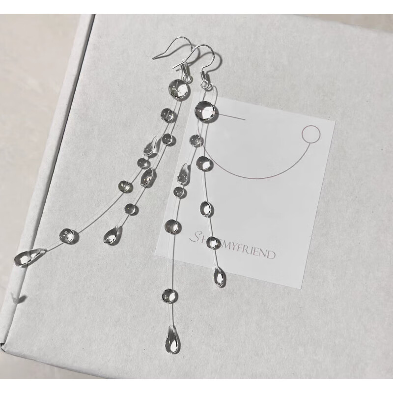早纪(ZAOJI)【清晨露珠】自制冰透露珠项链小众设计极简风感水滴耳环配饰 双层露珠流苏耳环