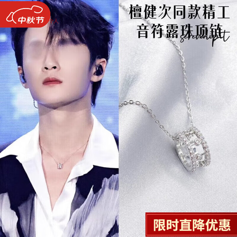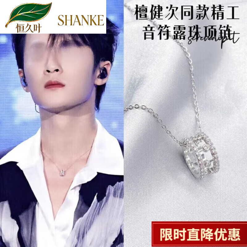 恒久叶檀健次同款项链銀色精致音符露珠锁骨链饰品气质钛钢链 同款音符露珠项链铜吊坠+钛钢链