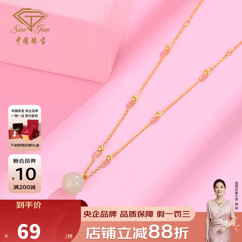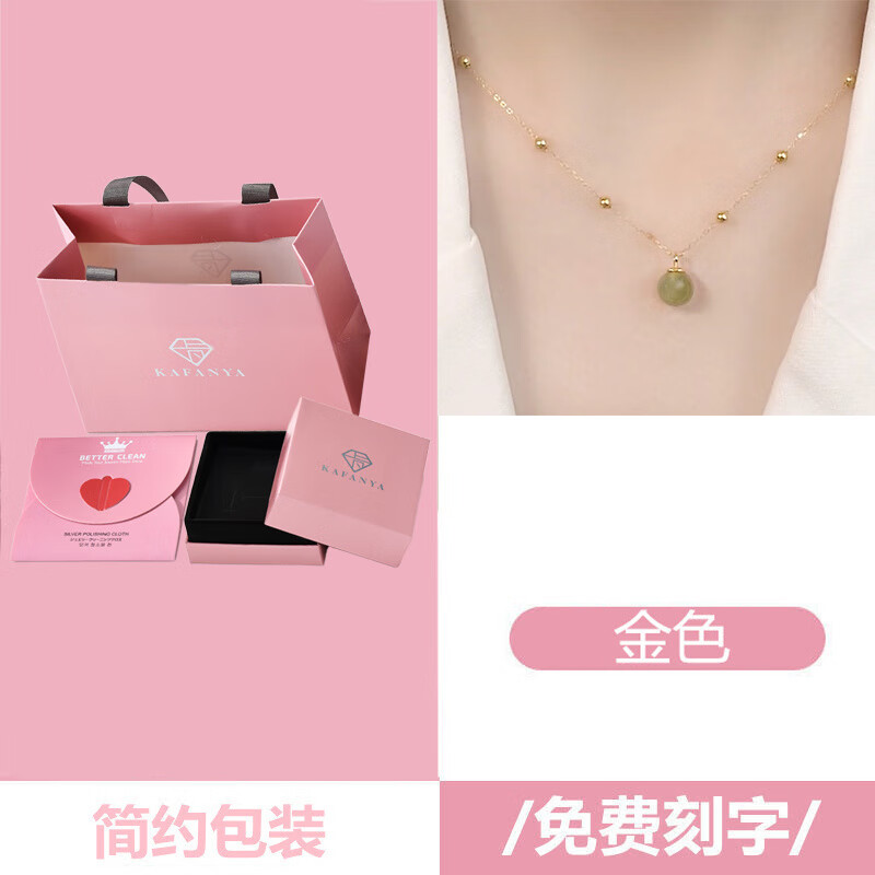 恒久叶和田玉项链女纯银路路通圆珠轻奢小众18K金2025新款 和田玉露珠金色+简约礼盒+证书