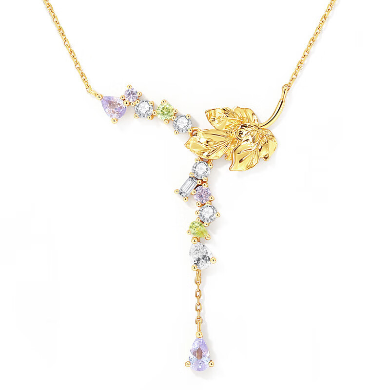 OOAK后花园系列时尚法式轻奢小众锆石葡萄叶项链葡节日礼物 露珠葡萄叶项链