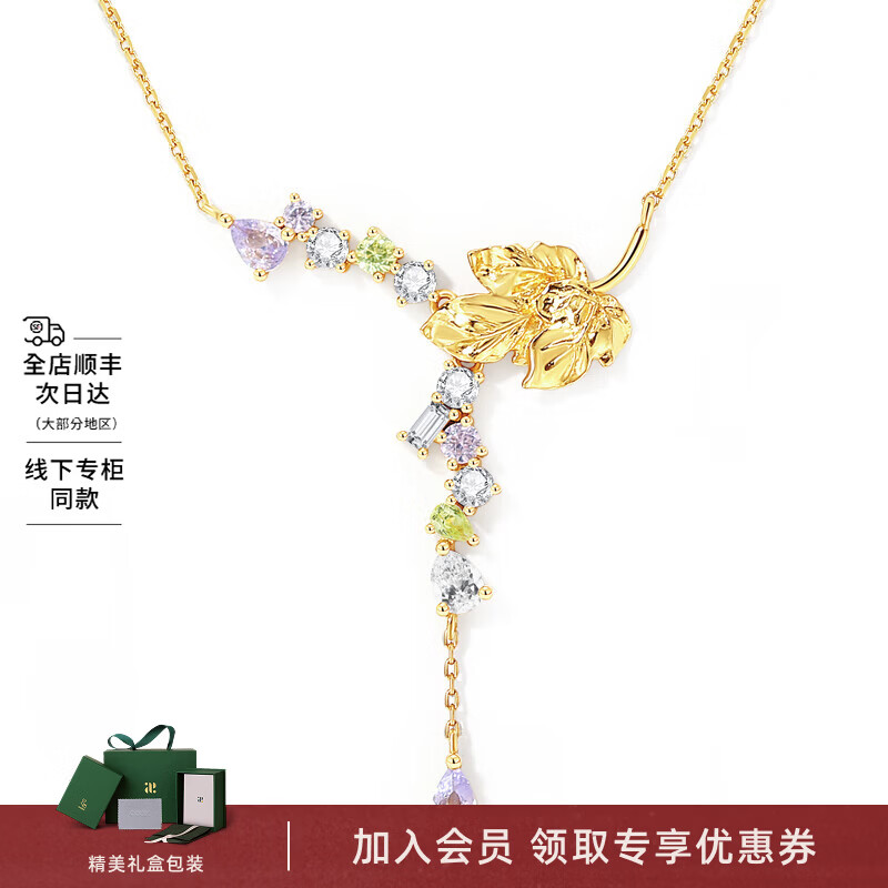 恒久叶时尚蝴蝶露珠项链女镀24k金镶钻蜻蜓项坠 花叶露滴款
