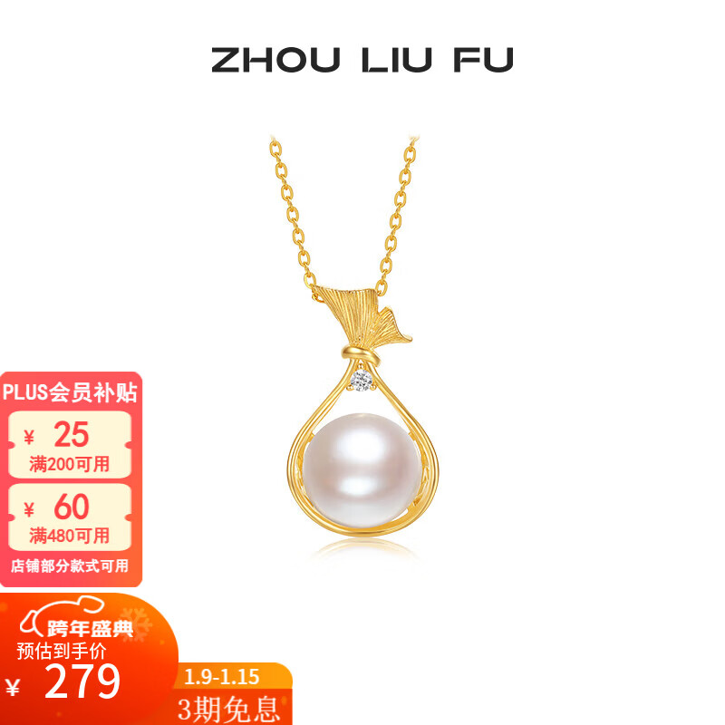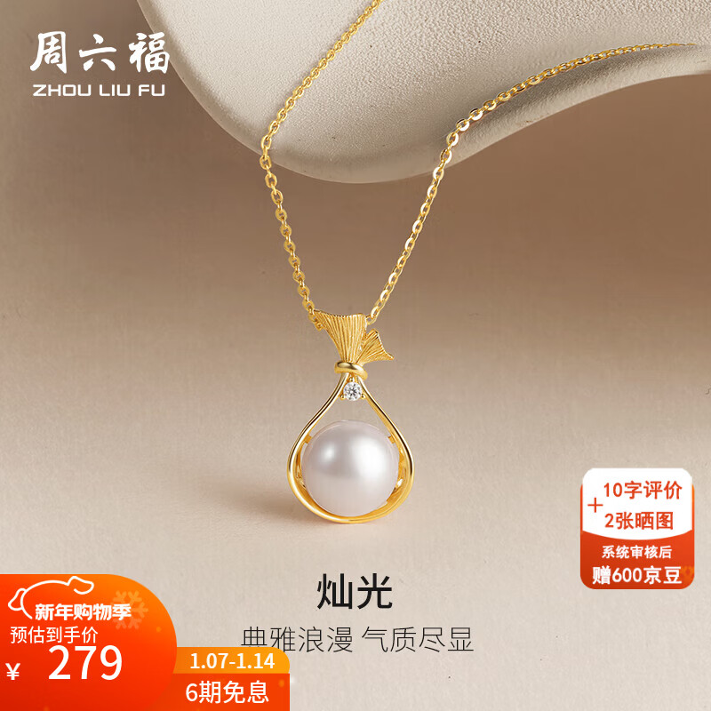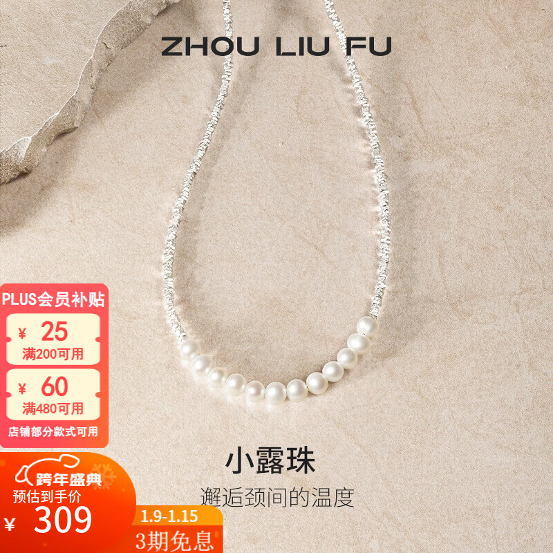 周六福(ZLF)新年礼物 S925银淡水珍珠项链女露珠气质链坠 链坠链长40+5cm