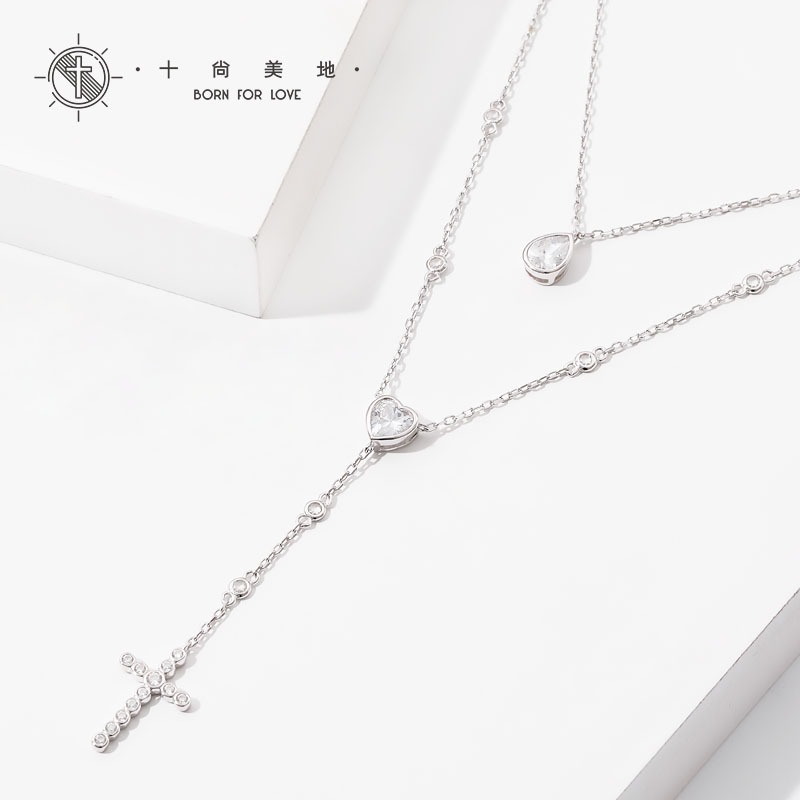 十尚美地露珠 轻奢925银叠戴长款项链女十字架套链生日节日送女友时尚礼物 双层项链 一条
