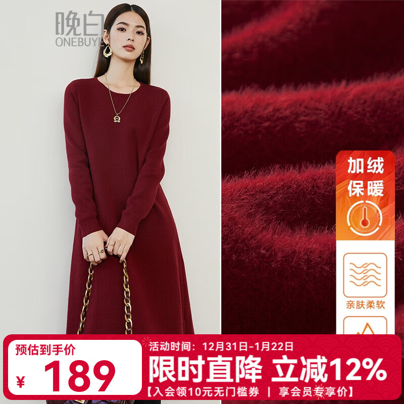 晚白【断码清仓】骐骥红新年穿搭新中式加绒保暖连衣裙显瘦宽松裙子 酒红色 L