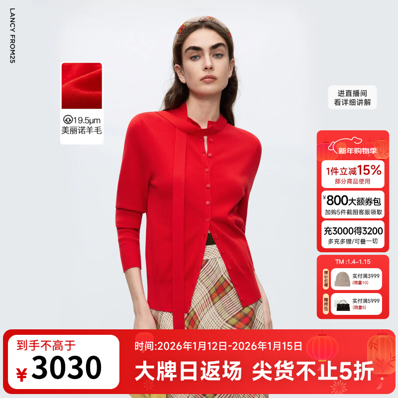朗姿骐骥红【王楚然同款穿搭】朗姿羊毛毛呢外套呢子大衣25冬季新款 中国红色开衫 M