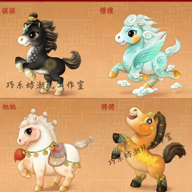 亦锦晗(YI JIN HAN)正版文创总台马年春晚吉祥物骐骐骥骥驰驰骋骋公仔玩偶毛绒玩具 骐骥驰骋(4个一套) 35厘米(正版授权+防伪标)