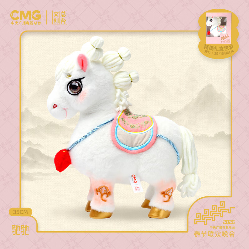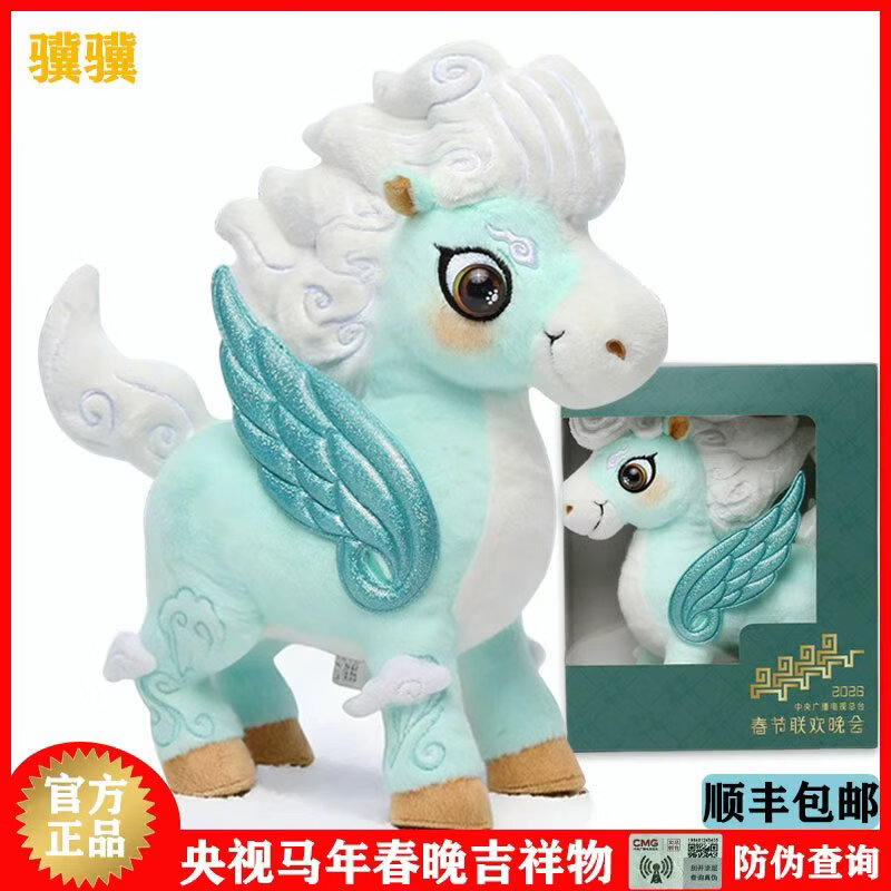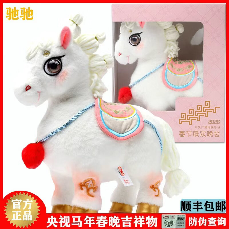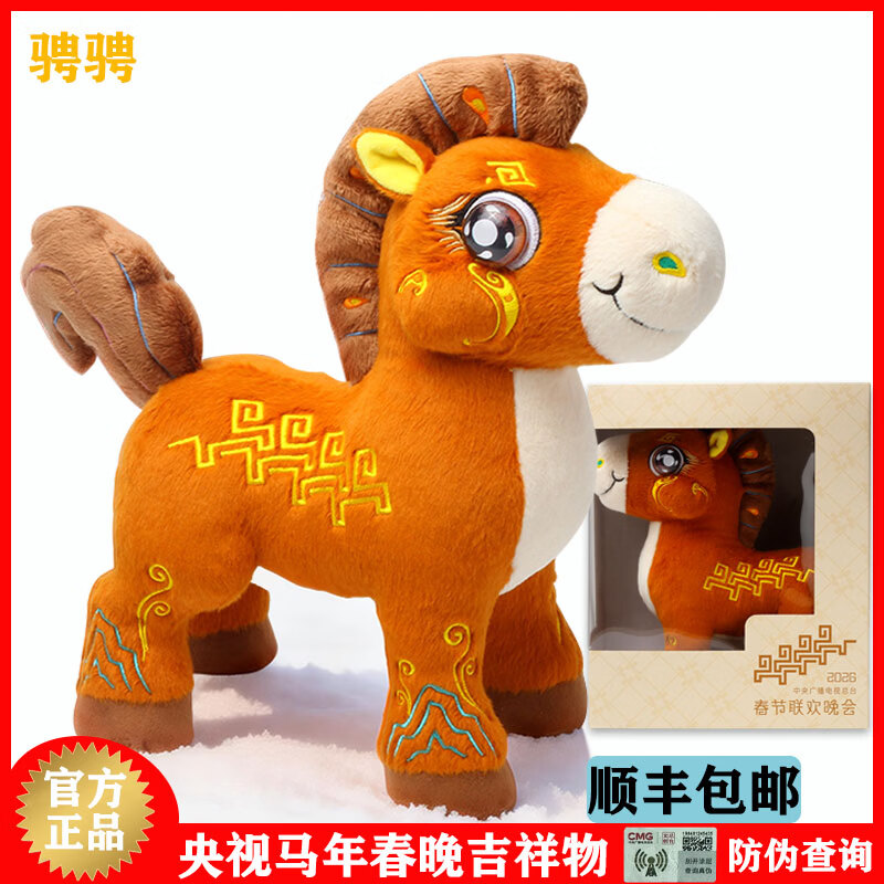 一半天天正版2026年央视春晚吉祥物骐骐骥骥驰驰骋骋公仔毛绒玩具马年玩偶 春晚吉祥物公仔【驰驰】防伪礼品盒装 35厘米