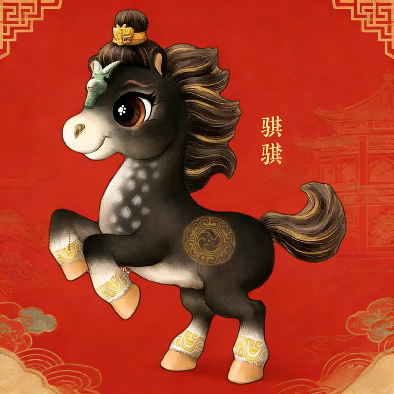 骐骥驰骋马年吉祥物【正版】总台文创马年2026新款吉祥物骐骥驰骋 全套4款(骐骥驰骋)毛绒玩偶【带礼盒证书】