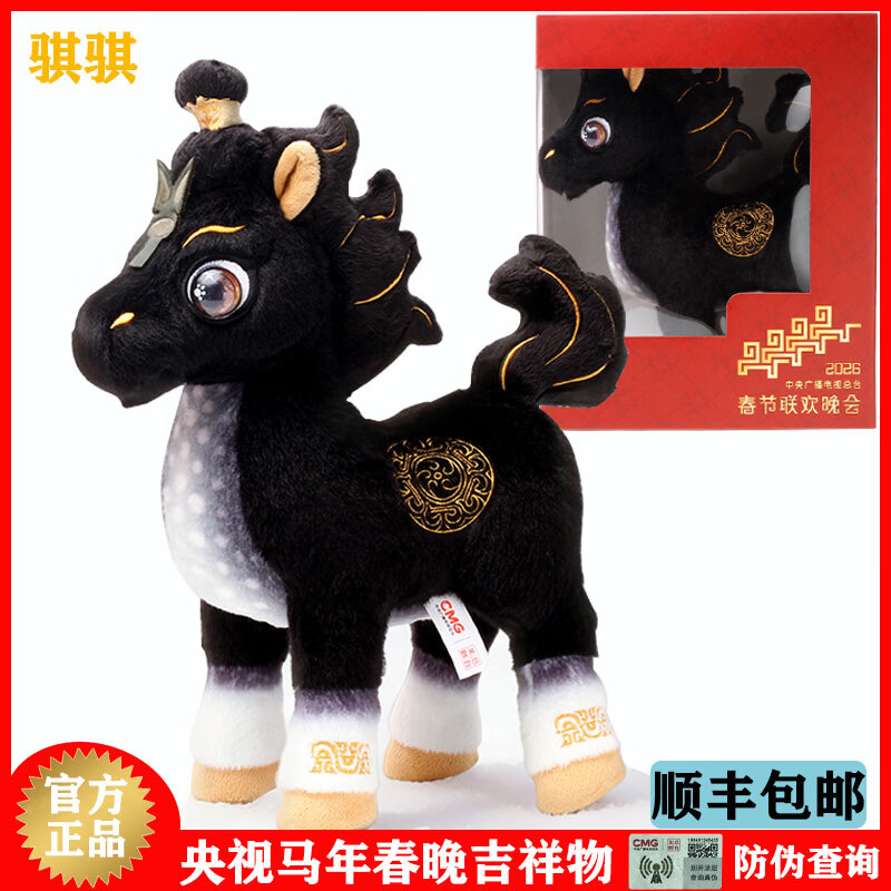 一半天天正版2026年央视春晚吉祥物骐骐骥骥驰驰骋骋公仔毛绒玩具马年玩偶 春晚吉祥物公仔【骐骐】防伪礼品盒装 35厘米