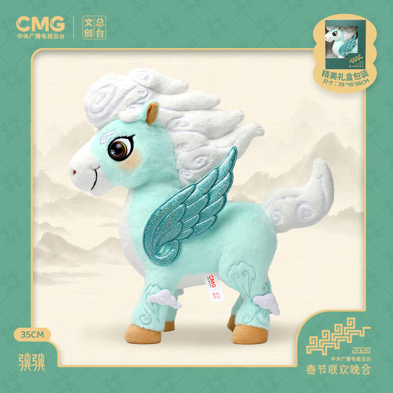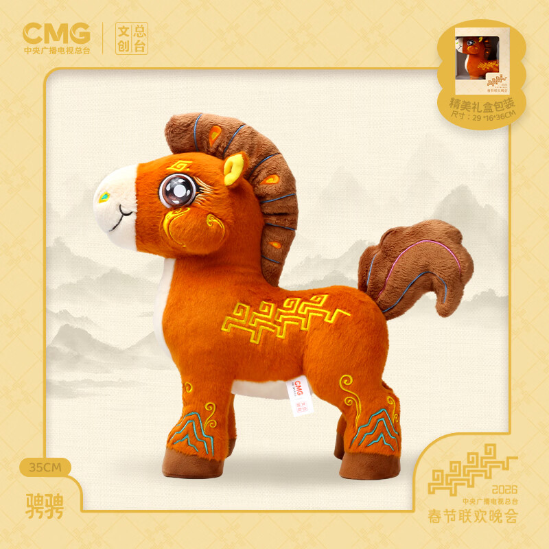 一半天天正版2026年央视春晚吉祥物骐骐骥骥驰驰骋骋公仔毛绒玩具马年玩偶 春晚吉祥物公仔【骋骋】防伪礼品盒装 35厘米