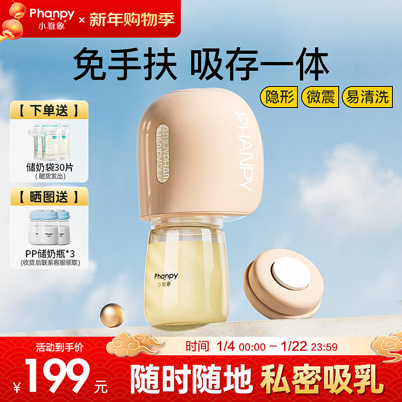 小雅象免手扶吸奶器电动便携一体式全自动微震单边集奶器挤奶器(奕悦)